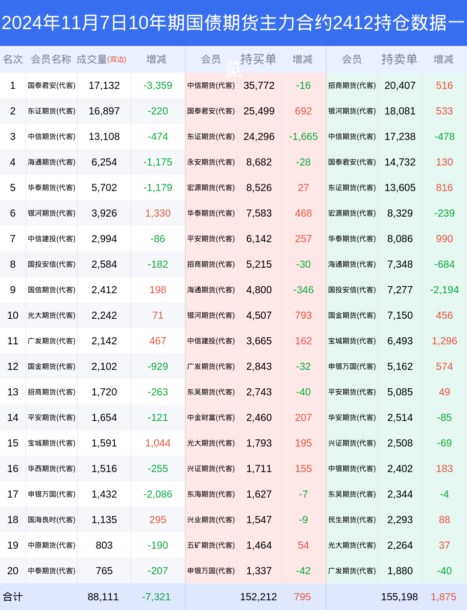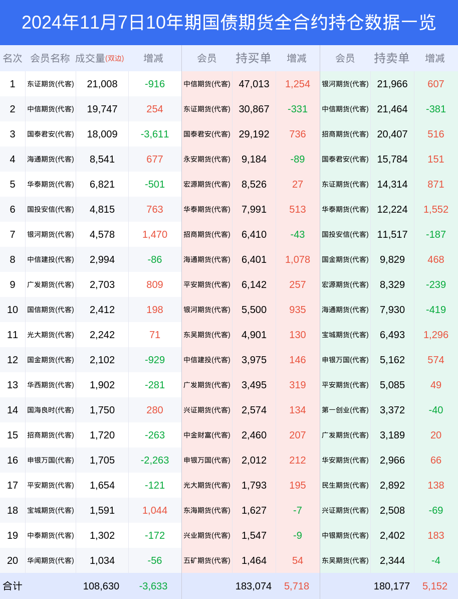 根据合并数据显示,多头前三席位为中信期货(代客),总持仓47013、东证期货(代客),总持仓30867、国泰君安(代客),总持仓29192;空头前三席位为银河期货(代客),总持仓21966、中信期货(代客),总持仓21464、招商期货(代客),总持仓20407;