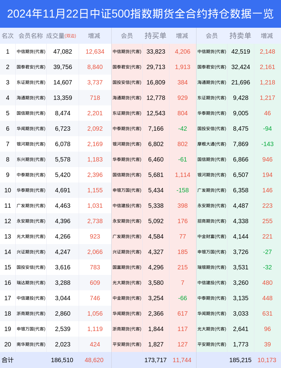 新浪期货 根据交易所数据,截至11月22日收盘主力合约中证500指数期货2412,涨跌-3.61%,成交量8.77万手,持仓数据显示前20席位呈现净空,差额头寸为3537手。