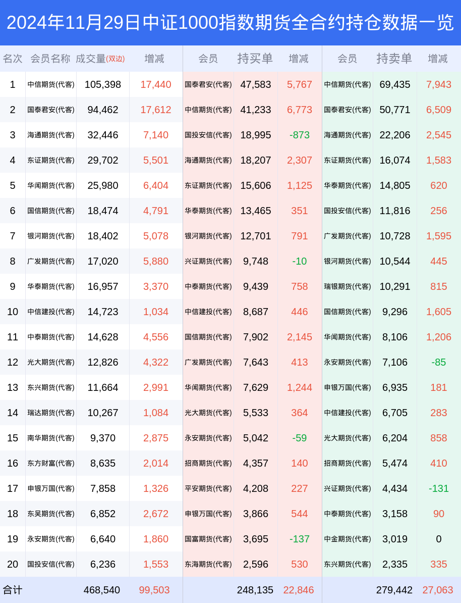 新浪期货 根据交易所数据,截至11月29日收盘主力合约中证1000指数期货2412,涨跌+1.72%,成交量23.56万手,持仓数据显示前20席位呈现净空,差额头寸为14427手。