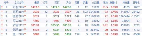 国内商品期货收盘,农副和黑色系领跌,花生大跌超6%,铁矿、热卷等跌超4%,焦炭、EG等跌超3%,PVC、塑料等跌超2%,红枣、PTA等跌超1%,白糖、棕榈等小幅下跌;纤板涨超3%,菜粕、豆粕涨超2%,豆二、沪金等涨超1%,硅铁、国际铜等小幅上涨。