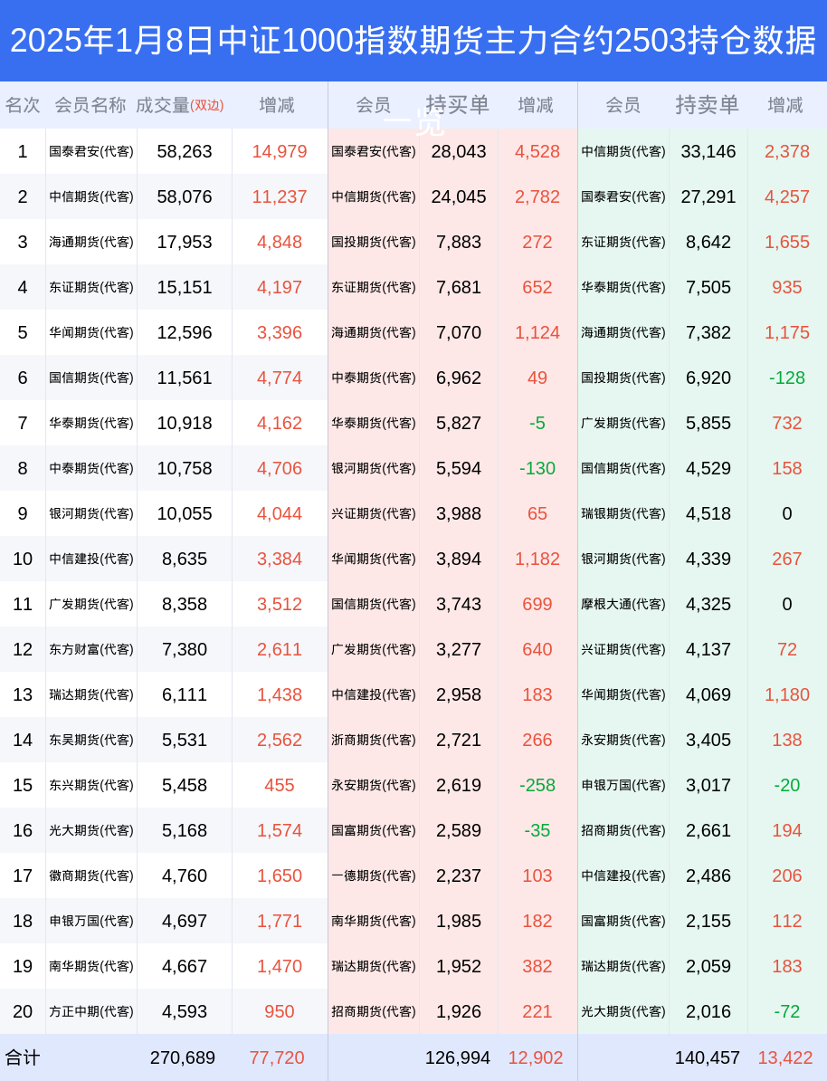 根据合并数据显示,多头前三席位为国泰君安(代客),总持仓61465、中信期货(代客),总持仓48233、东证期货(代客),总持仓17519;空头前三席位为中信期货(代客),总持仓73009、国泰君安(代客),总持仓57579、海通期货(代客),总持仓25680;