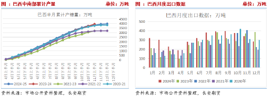 2024-25榨季巴西进入尾声,产量稳定在4000万吨左右。出口方面,该国本榨季保持强劲状态,2024年12月出口糖和糖蜜283.62万吨,较上年同期减少95.63万吨,降幅25.22%,但仍为历史同期高位水平。2024年全年出口糖和糖蜜3823.8万吨,为2012年以来的最高值,较2023的3507.7万吨增加316.1万吨,增幅9.01%。进入1月后出口将步入淡季,月度出口或将降低百万吨级别至200万吨以下。由于强劲的出口需求,导致巴西库存大幅调降。市场预计主产区中南部2025年3月底的库存仅100万吨,将创历史低位,而依赖巴西出口的国际贸易流偏紧张,将在新榨季集中出口之前,长期支撑原糖价格。对新榨季,作物的前景也随着该国的降雨而改善,预期丰产为主。
