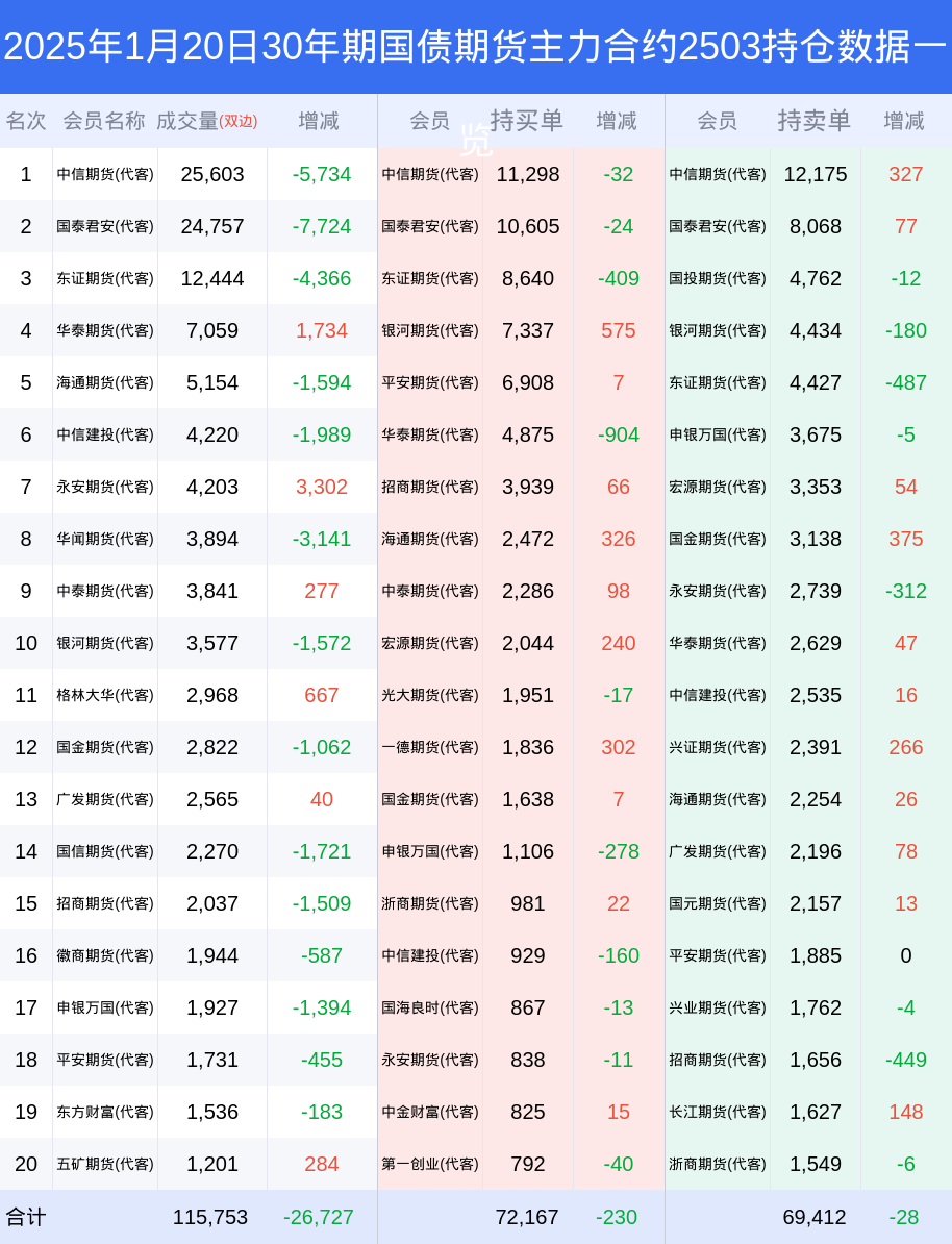 根据合并数据显示,多头前三席位为中信期货(代客),总持仓20768、国泰君安(代客),总持仓15107、东证期货(代客),总持仓9183;空头前三席位为中信期货(代客),总持仓24120、银河期货(代客),总持仓9797、国泰君安(代客),总持仓8430;