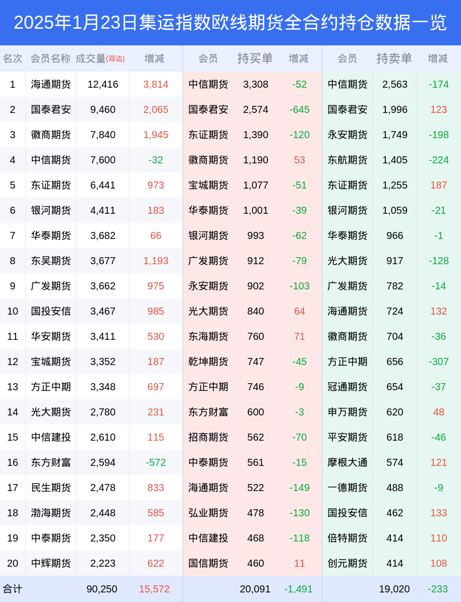新浪期货 根据交易所数据,截至1月23日收盘主力合约集运指数欧线期货2504,涨跌+2.16%,成交量7.77万手,持仓数据显示前20席位呈现净多,差额头寸为1314手。