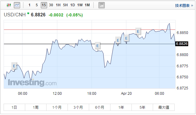 周四,人民币中间价报6.8792,为4月来最大降幅,上一交易日中间价6.8664,16:30收盘报6.8873,夜盘收盘报6.8880。